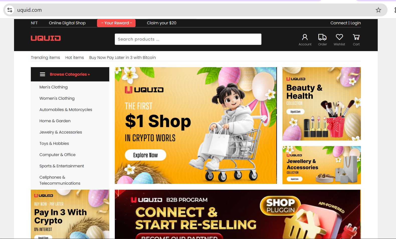 List products/services offered by UQUID Online Physical Shop: Men's & Women's clothing, Automobiles & Motorcycles, Home & Garden, Jewelry & Accessories, Toys & Hobbies, Computer & Office, Sports & Entertainment, Cellphones & Telecommunications, Luggage & Bags, ...