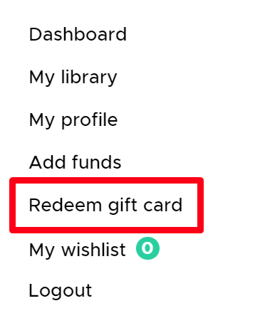 Step 3: Select the "Redeem gift card" option.