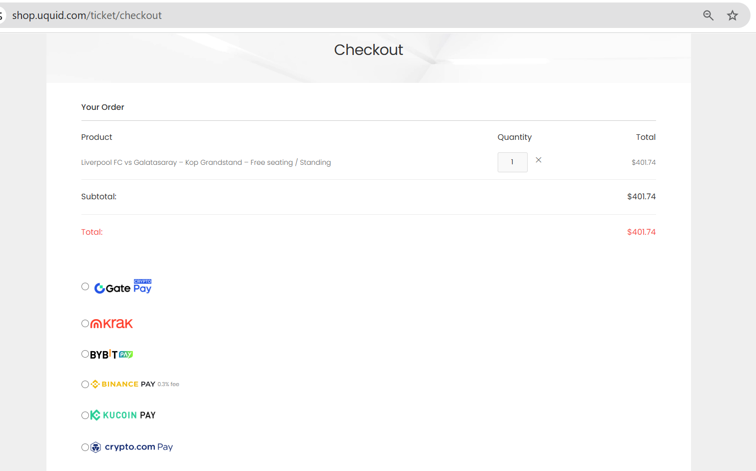Yes. UQUID allows you to buy event tickets with crypto such as: